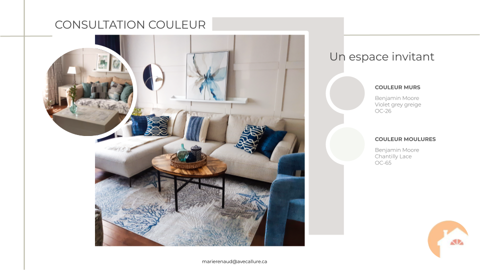Que puis-je accomplir avec la couleur sans démanteler toute la pièce et repartir à zéro? L’objectif de ce service Avec Allure Coloration vise à recommander des options de couleur de peinture parfaites pour harmoniser vos finitions, vos espaces, votre décoration en tenant compte des sous teintes existantes dans vos environnements intérieurs ou extérieurs.