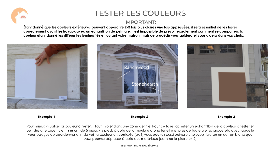 - Toutes les recommendations couleurs devront être testées avant d’être utilisées. Un procédé pour tester les couleurs est inclus dans la consultation.